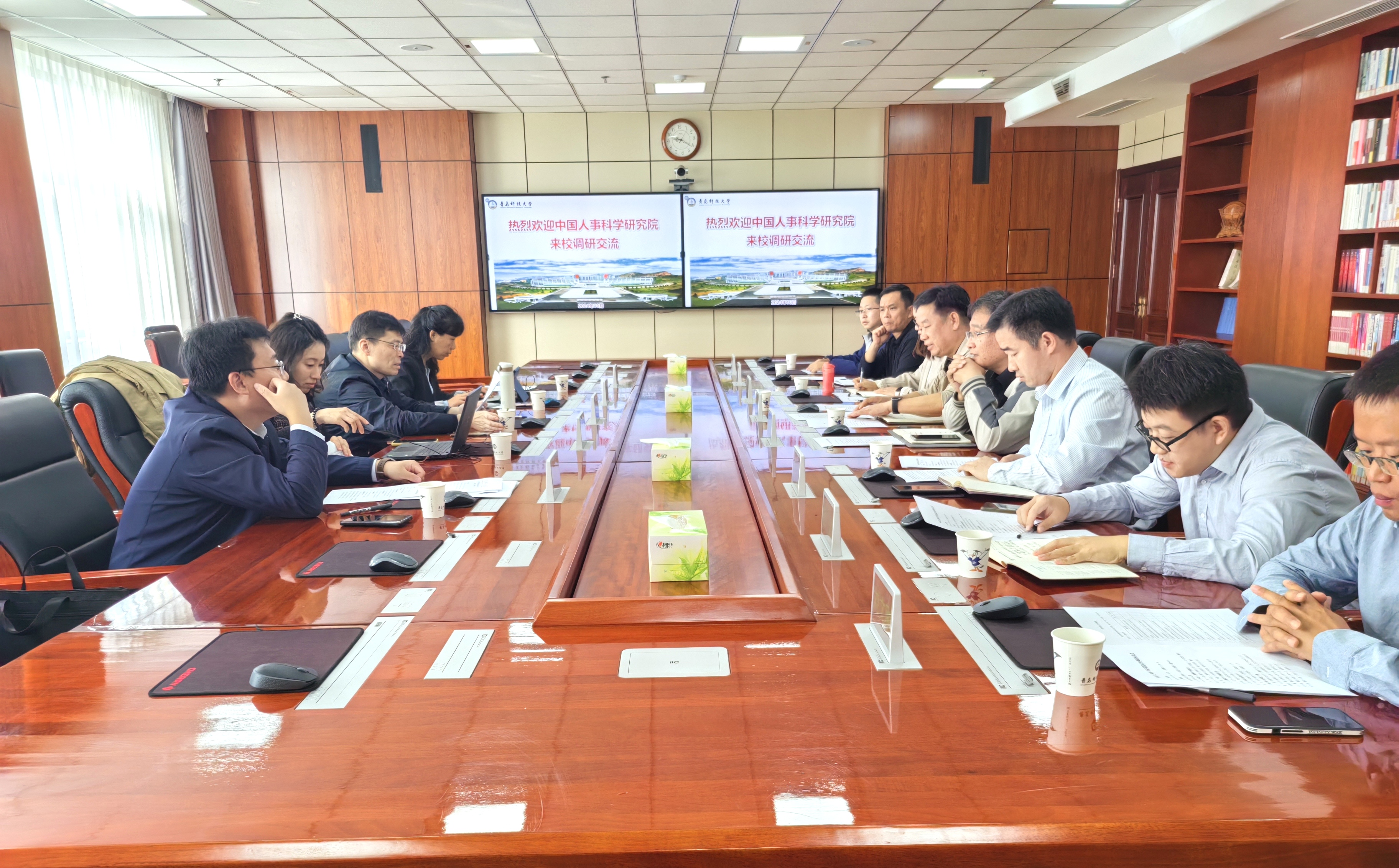 10月10日上午,中国人事科学研究院人才理论与技术研究室主任孙锐、青岛市人才人才发展促进中心副主任王蕊一行5人来校调研并召开座谈会,人事处处长王雷主持座谈会。