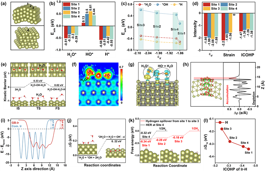 图2. GB-Ir催化剂表面HER理论计算