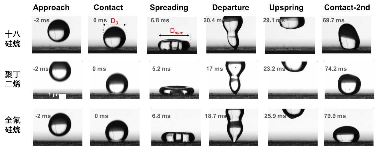 液滴的滞空时间越长,表面的驱液能力就越强,聚丁二烯所处理的表面高于目前常用的疏水改性剂,接近全氟化合物体系。
